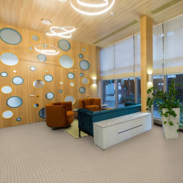 Grand Estate 890 offers a soft, scroll loop pile crafted from 100% solution-dyed polyester. Its action fleece backing adds sound insulation, moisture resistance, and long life.