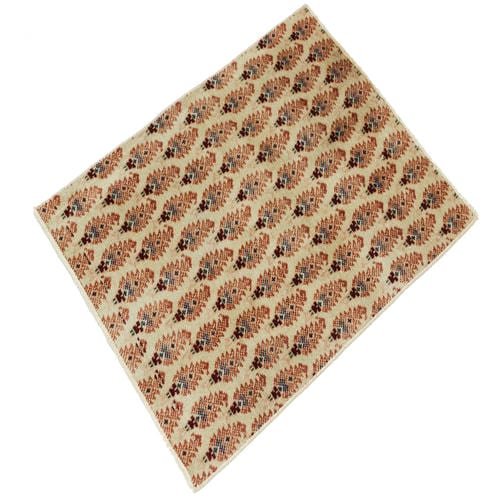This small hand-knotted Persian rug is crafted from handspun wool and cotton warp.